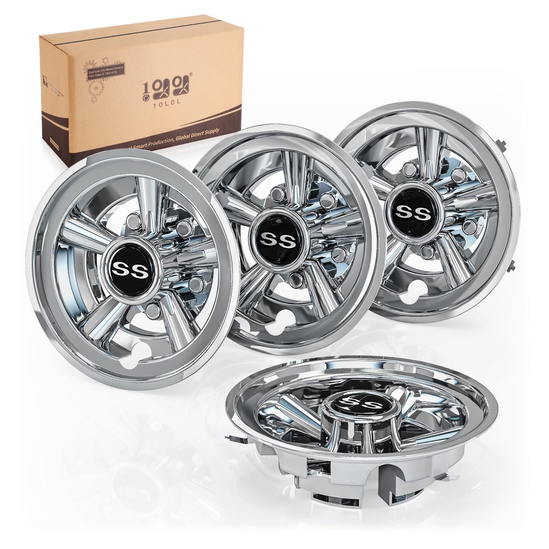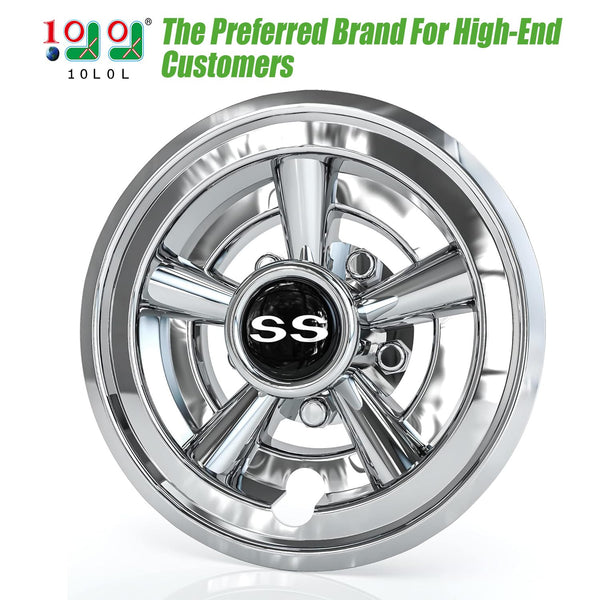 10L0L golf cart SS Wheel covers Hub caps for EZgO, club car, Yamaha - 8 Inch Snap-on Installation, chrome, Set of 4Type: golf cart Wheel capsFits: ALL 8 inch Wheel Hub golf cartsEZgO: TXT Marathon Medalist ST PDS Workhorseclub car: DS Precedent carryallYamaha: all g models g2 g9 g11 g14 g16 g19 g21 g22 g29DriveManufacturer: 10L0LMaterial: ABSOptional color: blackchromeTool-less snap-on installationPackage Included:4 x golf cart SS Wheel covers