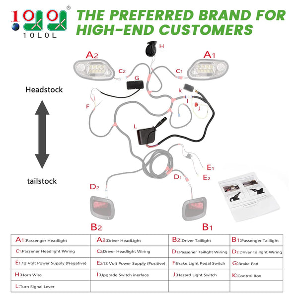 10L0L Golf Cart Universal Deluxe Light 9-pin Plug Upgrade Kit (Must Input 12 Volts)