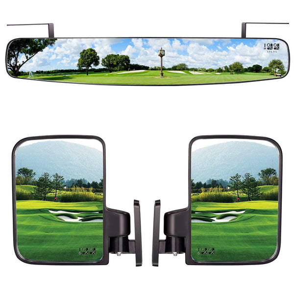 - Q: What is included in the package? A: The package includes one pair of golf cart side mirrors and one golf cart rear view mirror, along with the necessary installation screws.