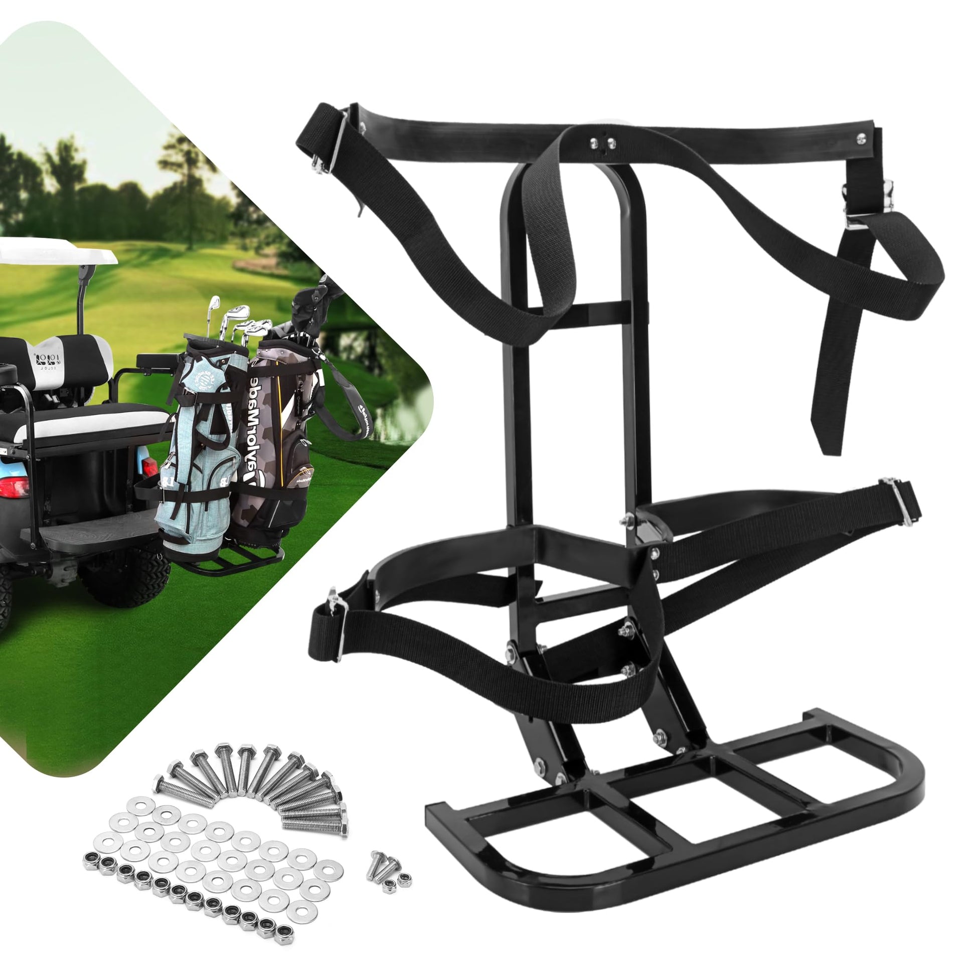 - Q: Is this golf cart bag holder compatible with all golf cart brands? A: This golf cart bag holder is designed for universal compatibility with Yamaha, Club Car, and EZGO golf carts.