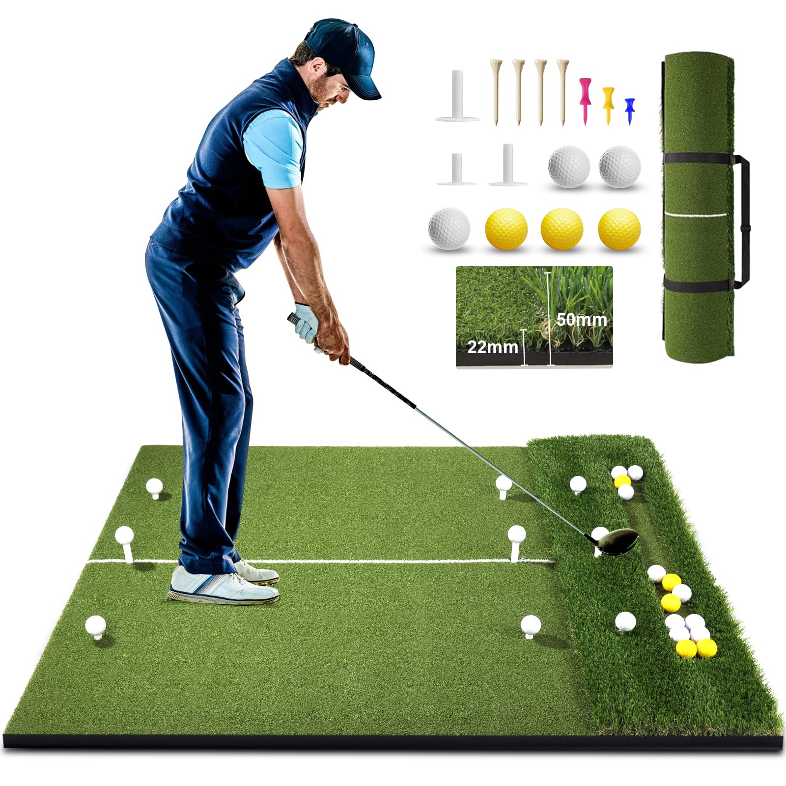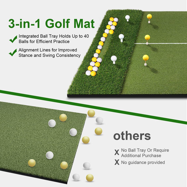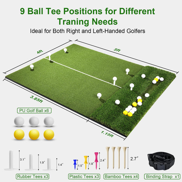5X4Ft Golf Mat With Ball Tray, Thickened Dual-Turf Golf Hitting Mat With Alignment Lines For Indoor & Outdoor Use, Golf Practice