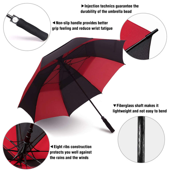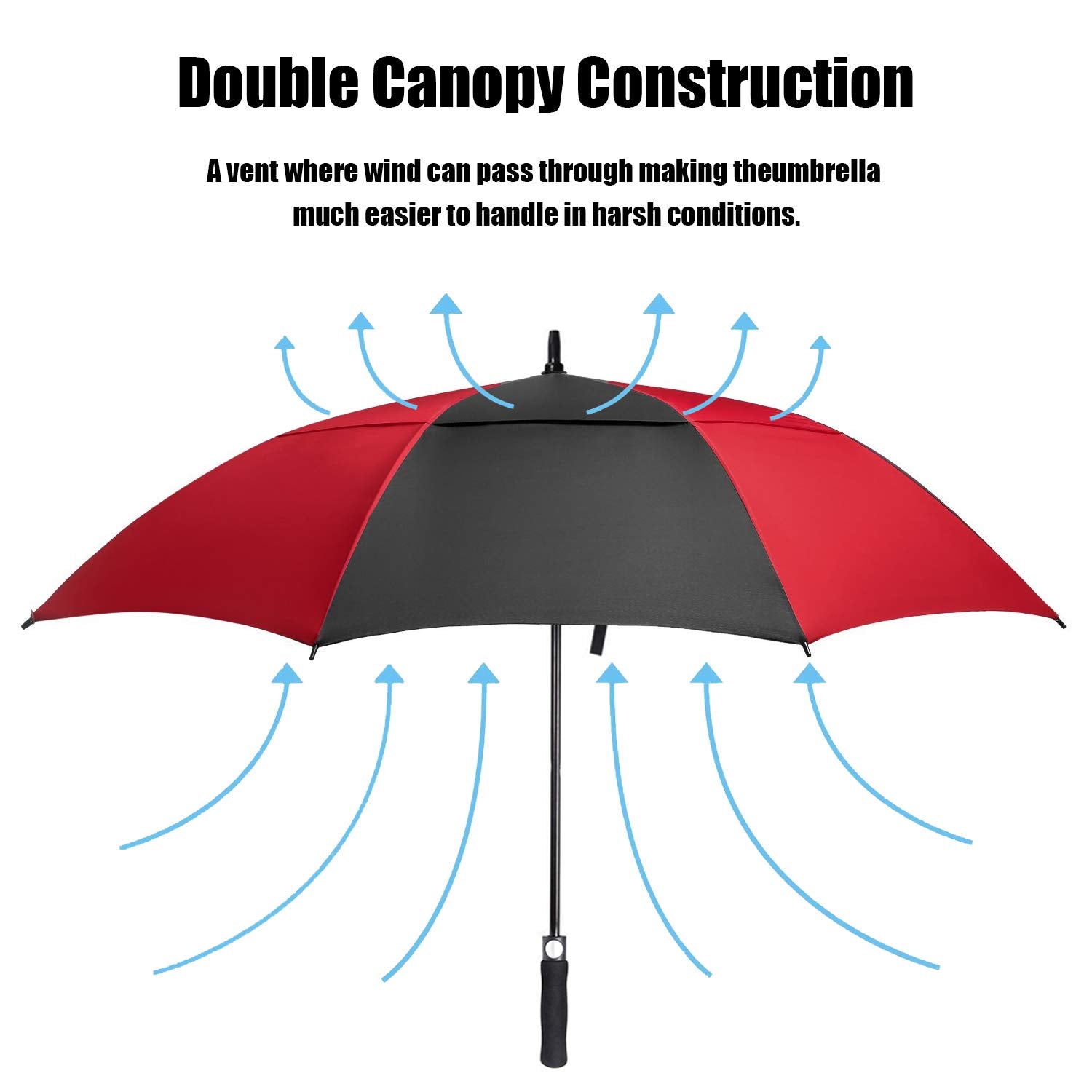 Features: Built to Last The frame is constructed using hardened stainless steel coated in high quality black resin Ergonomic Design Comfortable EVA grip handle Single Hand Operation Simply press the button on the handle to open the canopy. To return, manually pull with your hand until you can hear an audible click Windproof The double-canopy design creates a vent during where wind can pass through, making the umbrella much easier to handle in harsh conditions. Lightweight & Durable We use high quality fiberglass for the tips and ribs, which is strong and flexible whilst not being so heavy that you hand fatigues Protection 210T pongee fabric will ensure that you remain unaffected by nature Products Specifications Color: Black Net Weight : 1.6LB Length: 39.4inch Diameter: 52inch Arc Diameter: 62inch Warranty: 30-Day Money Back Guarantee Lifetime Warranty Warranty applies to the purchased product. Restrictions may apply.