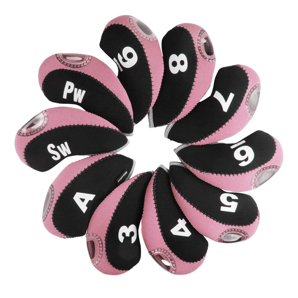 - Q: How many covers are included in the set? A: The set includes 10 covers, designed to fit irons numbered 3 through 9, as well as Pw, Sw, and A.