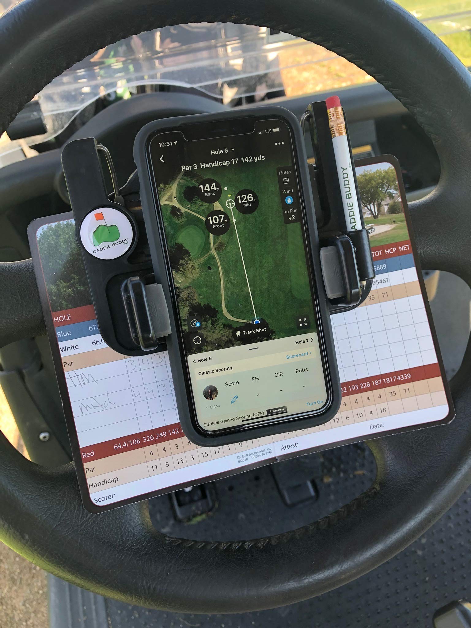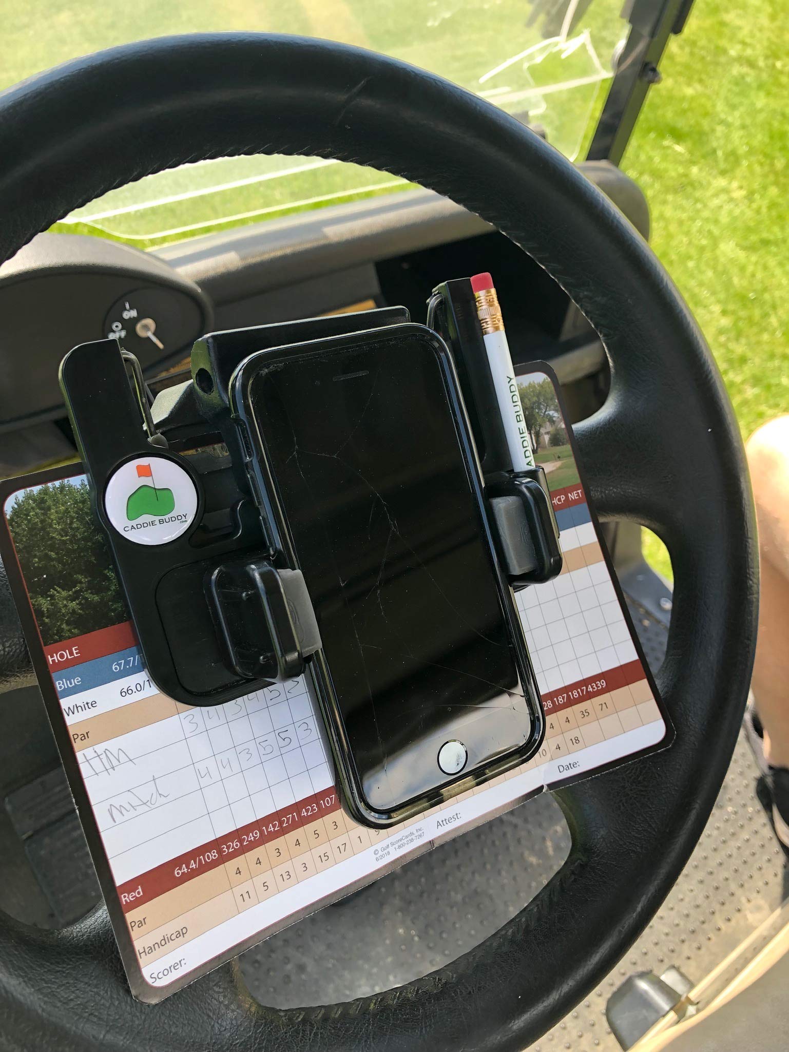 Are you looking for a way to mount your phone to your golf cart but you still want it easy to reach The Scorecard Pro is that and so much more Spring loaded arms allow you to quickly insert or remove your phone Fits any phone 2A- 35 Wide Rotates up and down so you can still keep score on your scorecard comes with a Ball Marker and Pencil Simple you use and works with any golf cart with a Scorecard Holder NO TOOLS REQUIRED Made in the USA