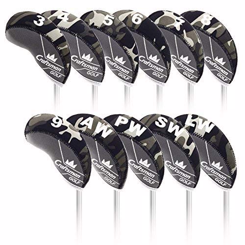 color : camouflage Black & gray One set : 11pcs,one size fit all irons (3,45,6,7,8,9,AW,SW,PW,LW) Made of neoprene Machine washable 100% brand new Best protection of your irons from dinging and damage as much as possible during play or travel Our commitment to the Highest Quality golf Accessories craftsman golf is committed to bringing you advanced golf accessories to improve your play