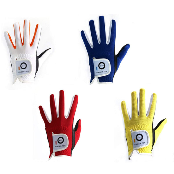Finger Ten Junior Kids Dura Feel White Blue Red Yellow Golf Gloves Extra Value 2 Pack (Small White, Left)
