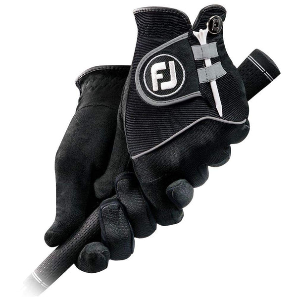 The FootJoy RainGrip gloves are perfect for those sudden showers on the course. They feature QuikDry II knit material along the back of the fingers for optimum breathability, flexibility and quick-drying comfort as well as an autosuede knit palm for unmatched grip in wet or humid conditions. The angled ComforTab closure is strategically positioned for a precise fit and stress-free comfort.