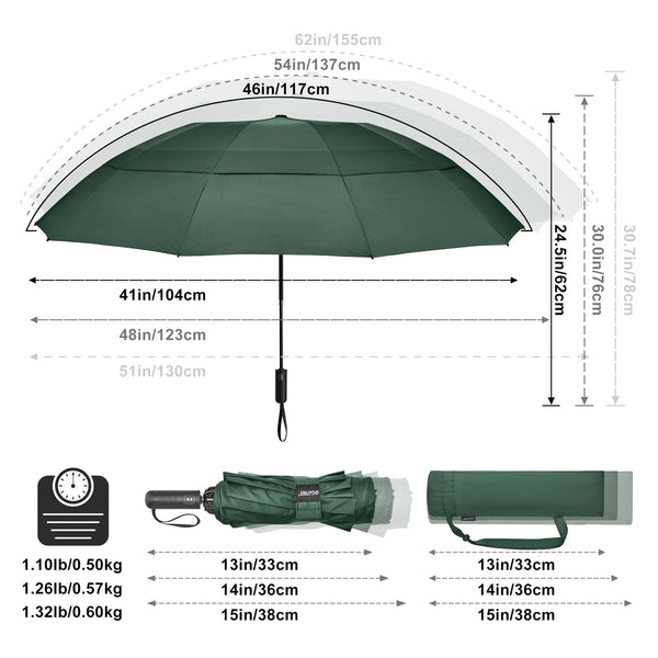 G4Free 46 Inch Large Golf Umbrella Compact Reverse Travel Umbrella Automatic Open Close (Green)