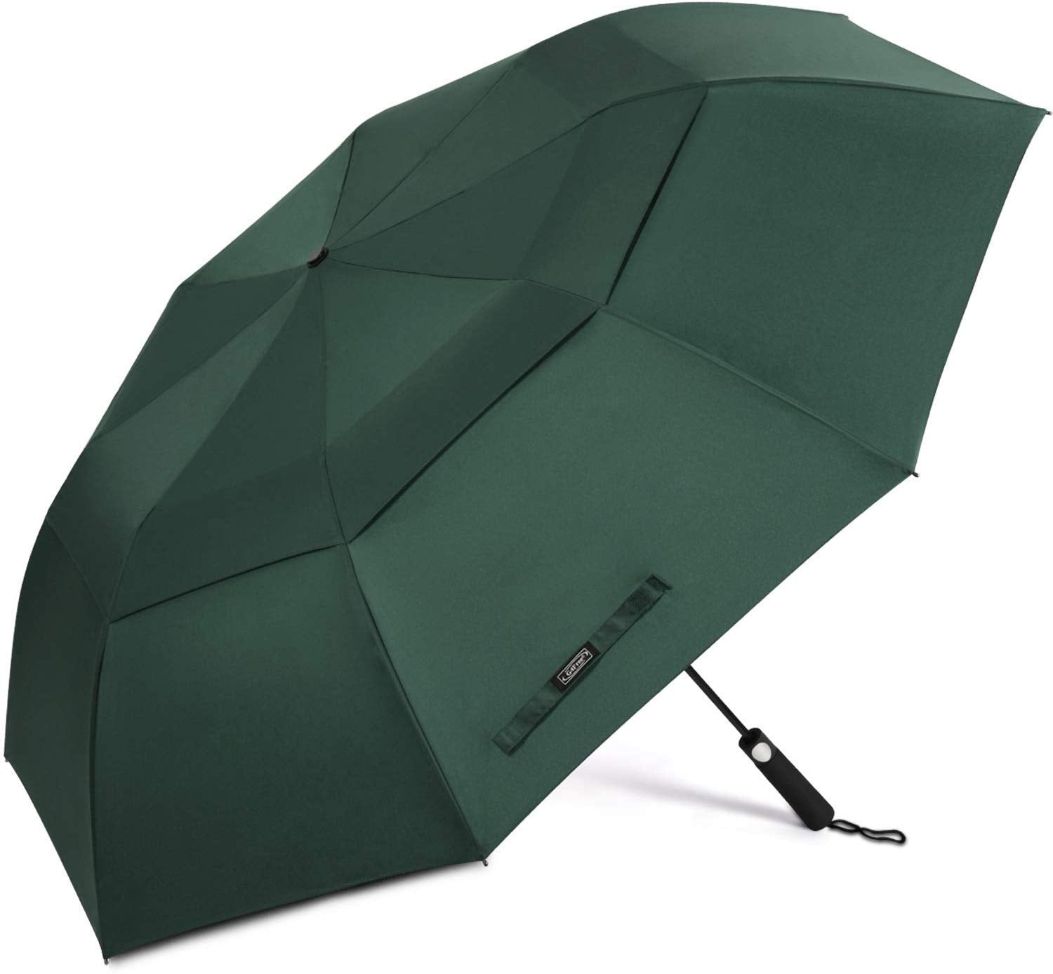 The Ultimate Folding Golf Umbrella 1.The Patented Double Subsidiary Frames 2.2. Double-canopy Design 3.3. Folds to 23 '' but Provides Great Coverage With Its 62 '' Canopy 4.4. Auto Open Mechanism Your Ideal Umbrella - Oversize but Foldable and Portable VERY COMPACT & PORTABLE FOR ALL WEATHER Are you looking for a durable, yet portable umbrella to carry with you when you are caught in a rain? With a foldable length of only 23 ''(58 cm) and a light weight of only 1.36 lb / 620g,G4Free heavy duty Golf Umbrella is compact enough to bring it for golfing, camping,traveling, sporting events or walking your dog! You will love the powerful protection of our double-canopy design with premium fiberglass wind-resistant frame system & shaft construction of our large Umbrellas. The unique design and premium materials make sure this umbrella can withstand intense weather conditions! G4Free Umbrella Keeps You and Your Family Safe! The oversized 62 '' inch canopy provides perfect protection not only for you but for your better spouse, your kids or even your dog! The 210T specially coating water repellent fabric and ergonomic EVA handle make it outperform any competition and you 'll stay safe! G4Free umbrella is very easy to use. Simply open the umbrella with a press of a button within one second, this feature gives you quick rain and sun protection. Moreover, our premium fiberglass and stainless steel frame system makes sure you 'll never have to throw it out in the middle of a storm.
