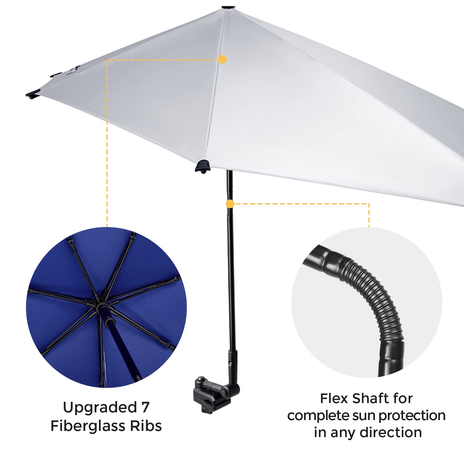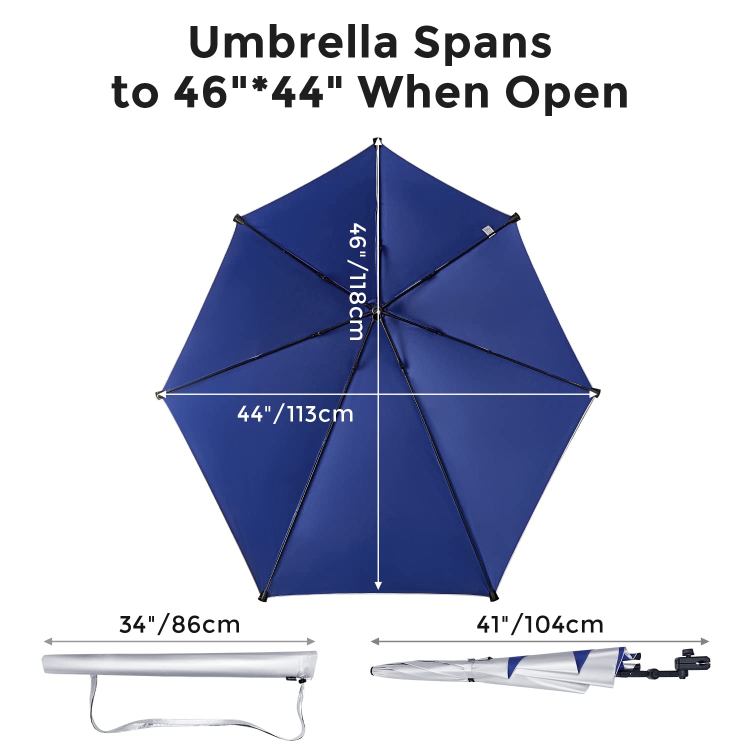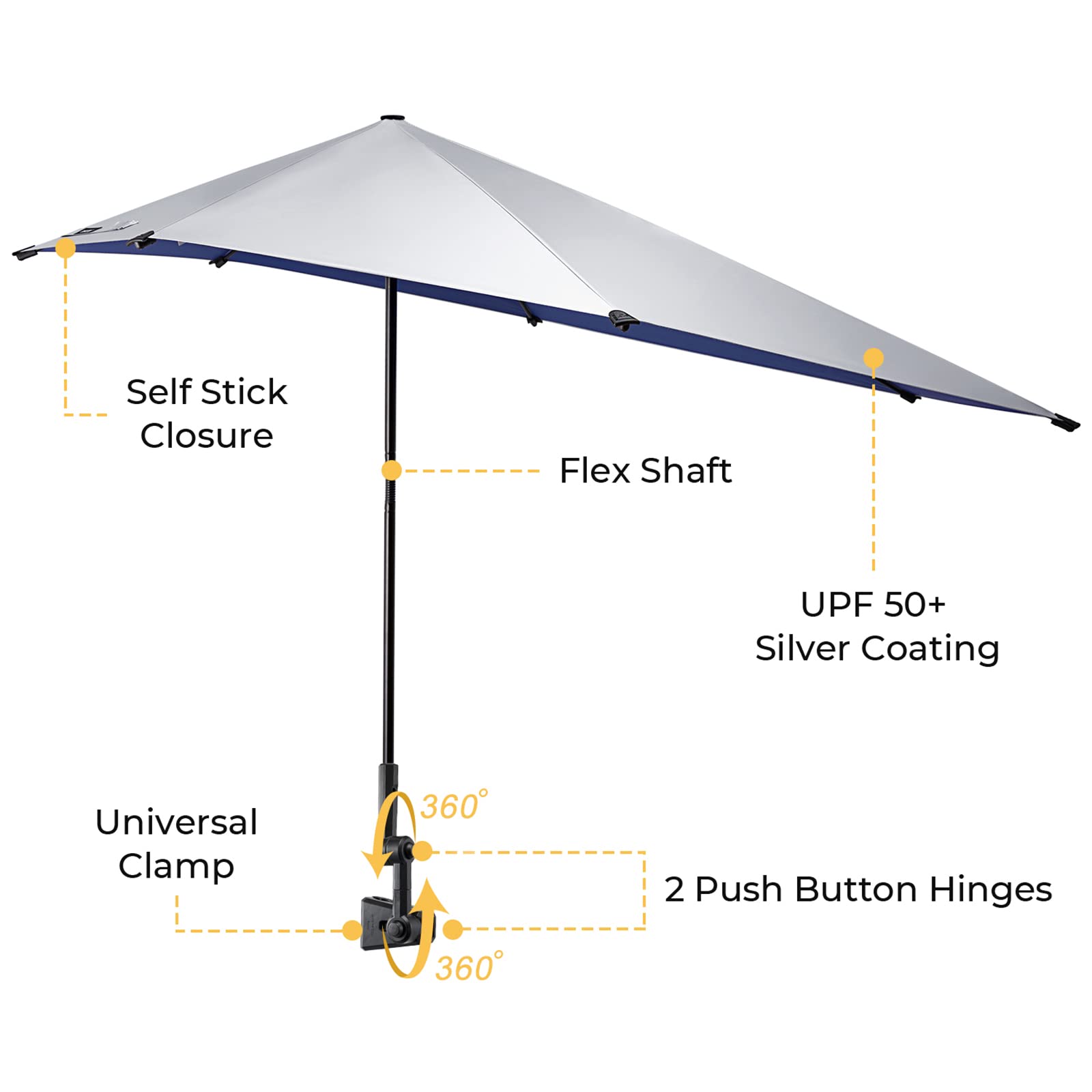 G4Free Upf 50+ Adjustable Beach Umbrella Xl With Universal Clamp For Chair, Golf Bags, Stroller, Wheelchair, Bleacher, Patio(Blu