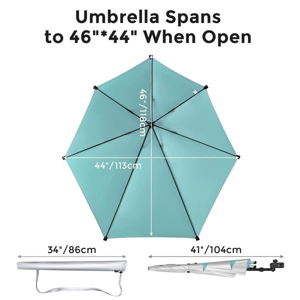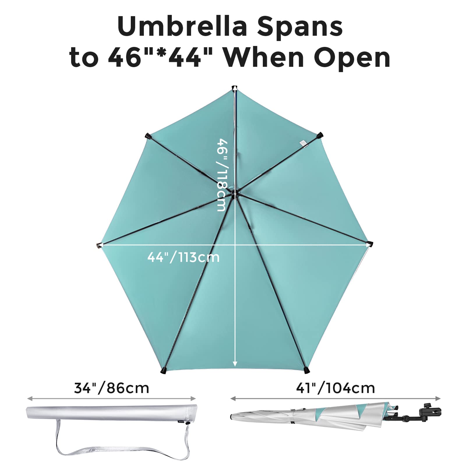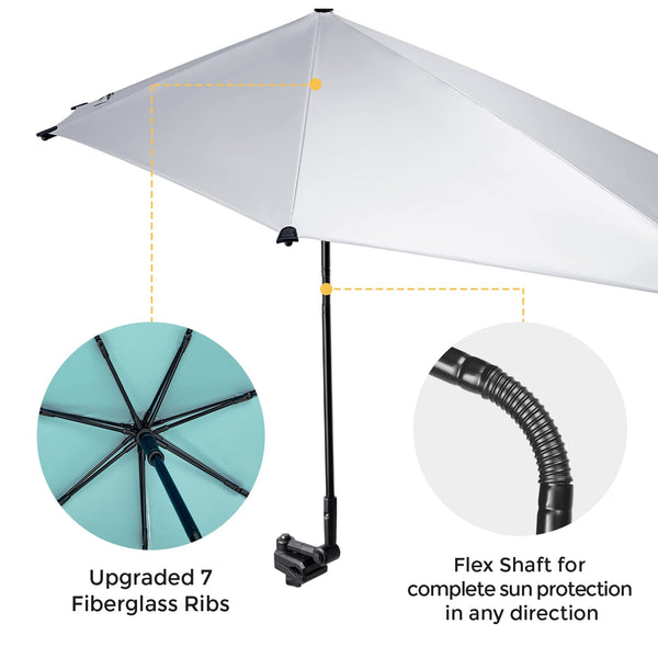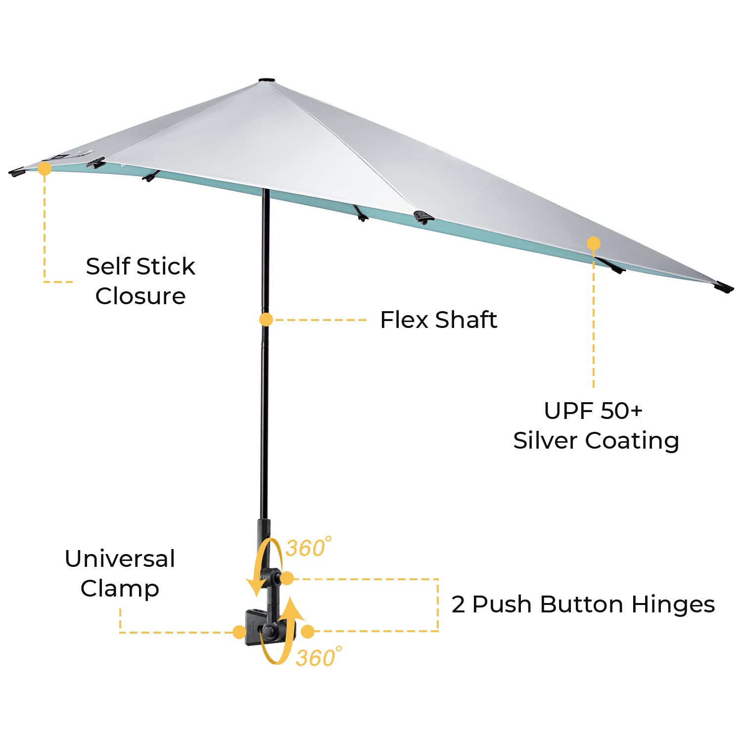 G4Free Upf 50+ Adjustable Beach Umbrella Xl With Universal Clamp For Chair, Golf Bags, Stroller, Wheelchair, Bleacher, Patio(Lak