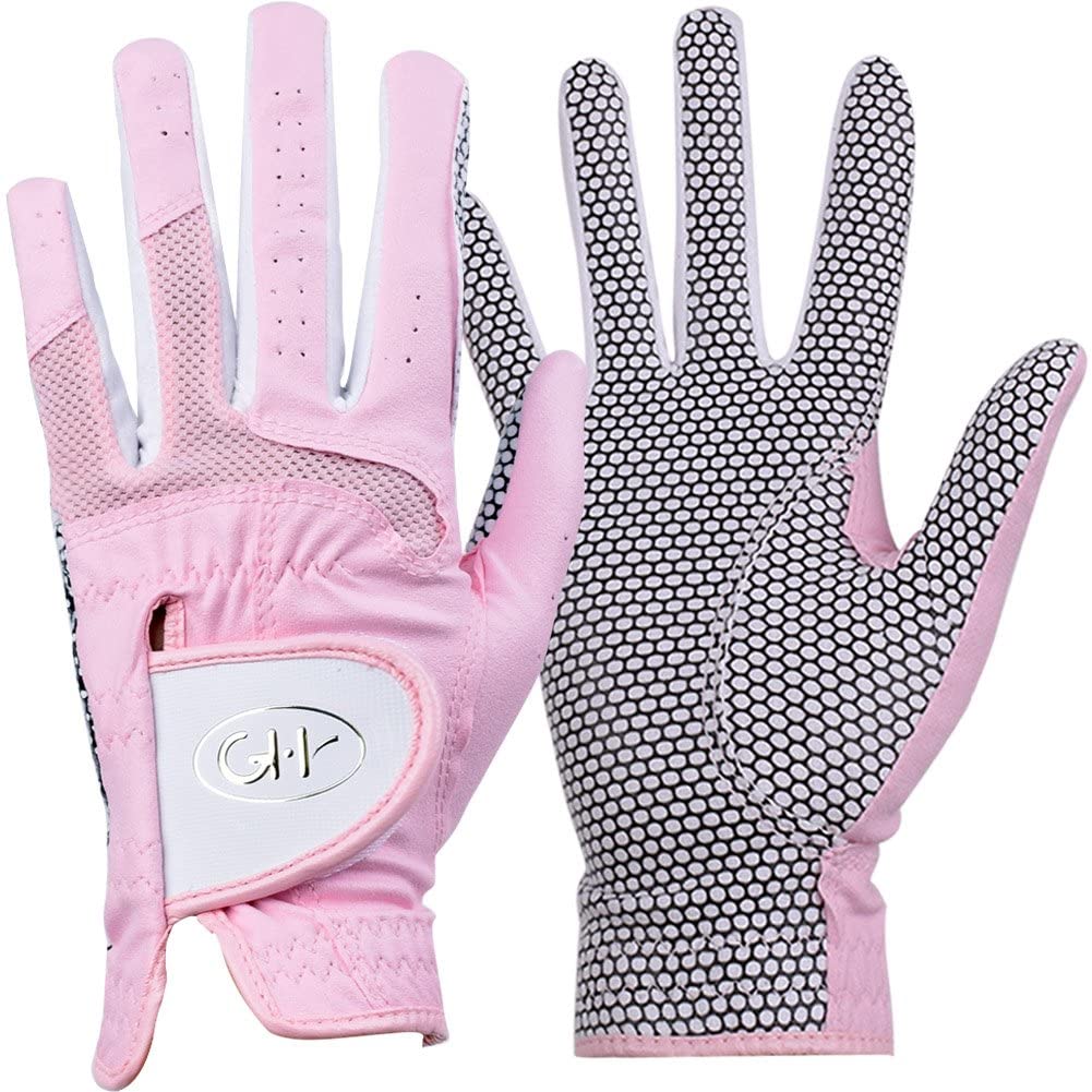 Gh Womens Leather Golf Gloves One Pair - Plain Both Hands (Pink, 19 (S))
