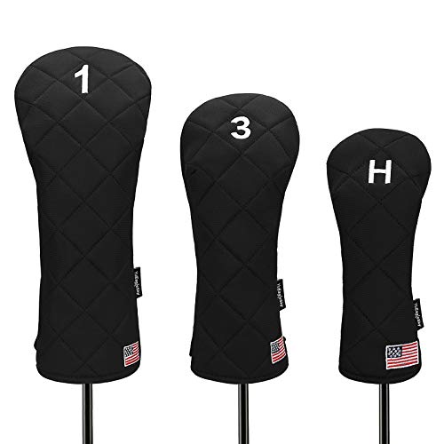 Golf Head Covers (3Pcs) Driver Fairway #3 Hybrid For Club Mens (Black)