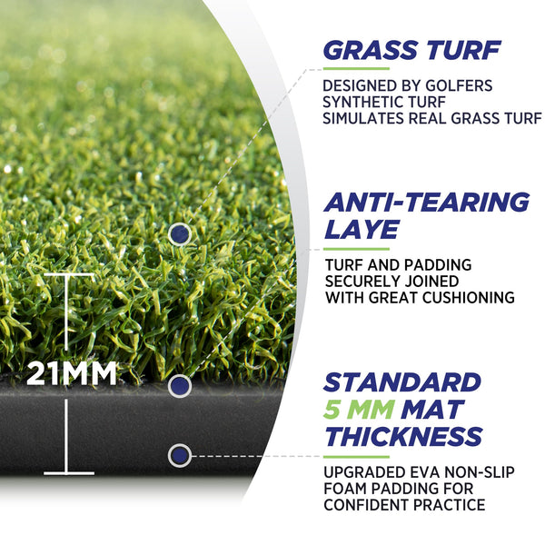 Golfguru Golf Mat, 5X4Ft 21Mm Artificial Turf Golf Hitting Mats Practice With 10 Golf Balls, 9 Golf Tees, Golf Hitting Practice