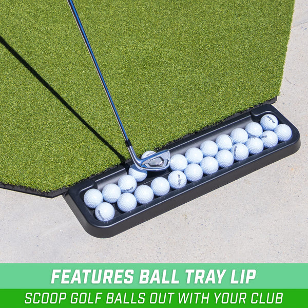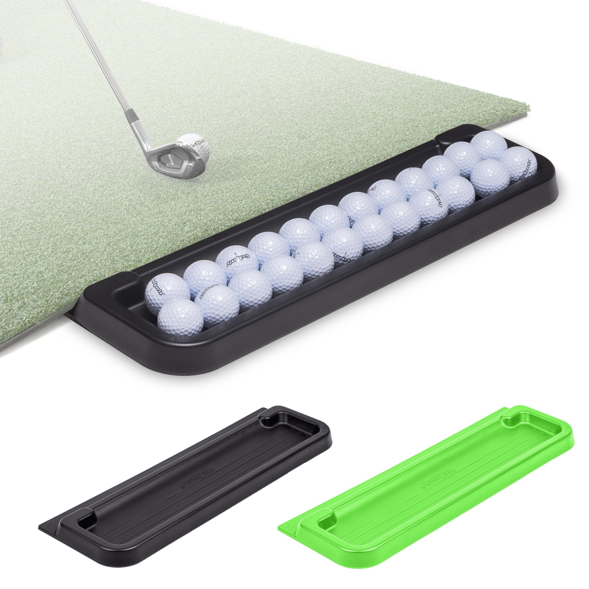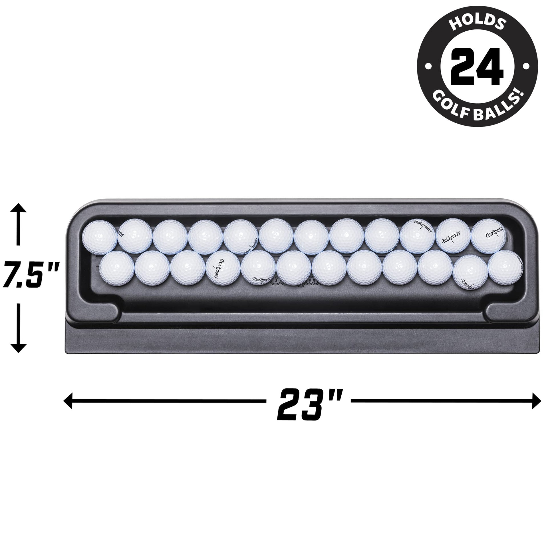 The GoSports Golf Ball Tray is an essential indoor and outdoor training accessory for any golfer looking to master their swing. Start practicing smarter and more efficiently by combining the golf ball tray with any size golf hitting mat or golf net to make practicing your swing easy and efficient! The golf ball tray measures 23 in x 7.5 in and holds up to 24 golf balls (stack balls to hold more) so you can stay organized and focus on your swing thanks to quick access to your golf balls that lets you instantly setup your next shot. The golf ball tray is constructed from premium hard plastic to withstand countless training sessions so you can practice like you're at the range! Now sharpen your skills with the GoSports Golf Ball Tray!.