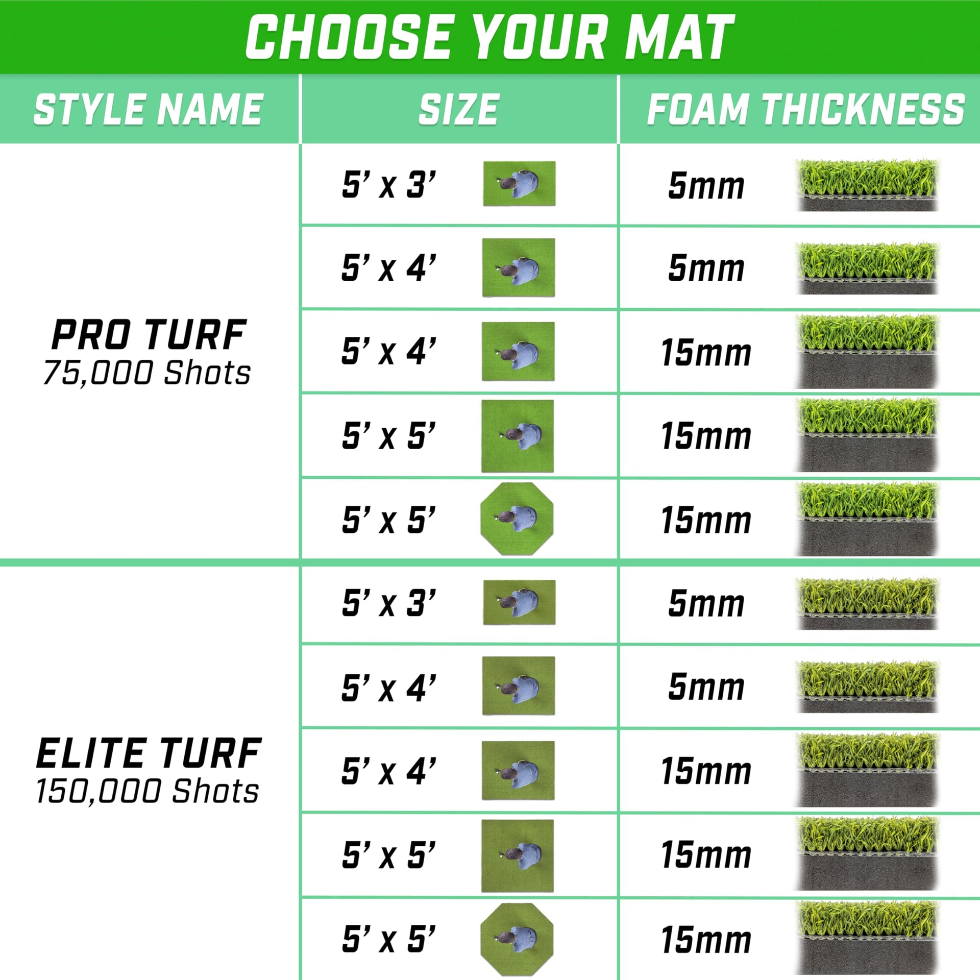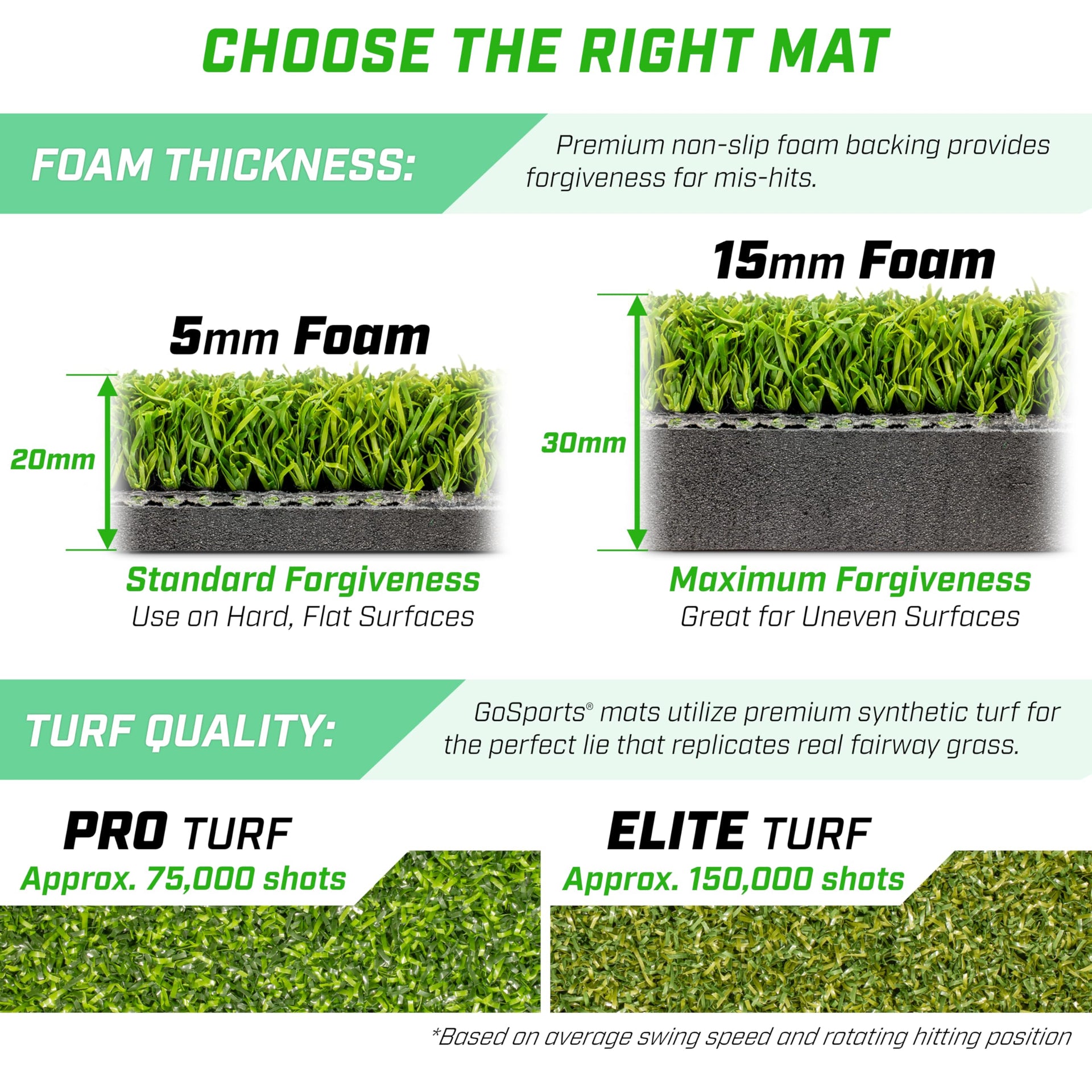 Gosports Golf Hitting Mat - Elite 5 X 4 Ft - 15 Mm Artificial Turf Training Mat For Indoor/Outdoor Swing Practice, Includes 3 Ru