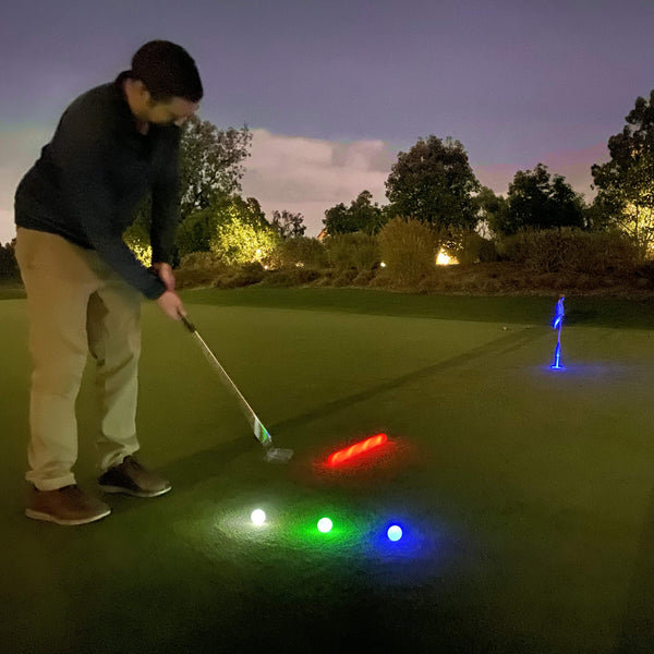 Play or practice in the dark with the GoSports LED Golf Balls! Now anyone can take the fun of golf into the night. Golfers can now practice or play with limited light thanks to the ultra-bright LED core and battery built-in to each golf ball. The LED Golf Balls are activated on impact on a 10 minute timer for nighttime chipping or putting practice, short hole courses with friends and more! Pro Tip: Leave an illuminated ball or two in the cup during play so you can see where to aim. Due to the built-in LED components the balls fly about 65% as far as a standard golf ball, making them great limited flight balls for practicing at home or on the course after the sun sets! Now take a swing at nighttime golf with the GoSports LED Golf Balls!.