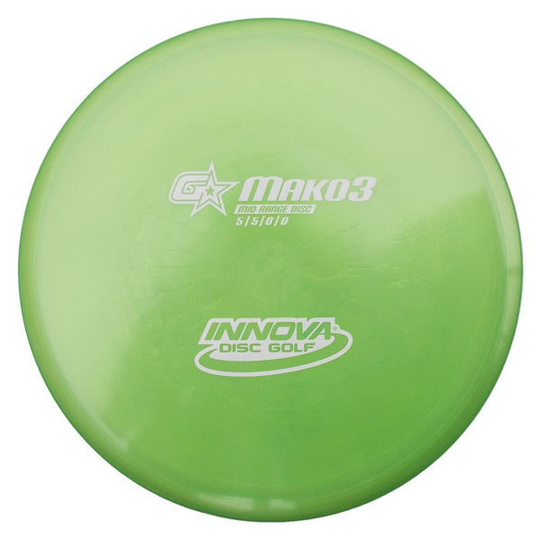 GStar is a new softer, more flexible blend of Star plastic, which features an eye-catching pearlescent sheen for a unique look as well. Part of the new ''3'' series line up, the Mako 3 is a super straight flying mid-range disc, with a smooth comfortable rim, and ample glide.