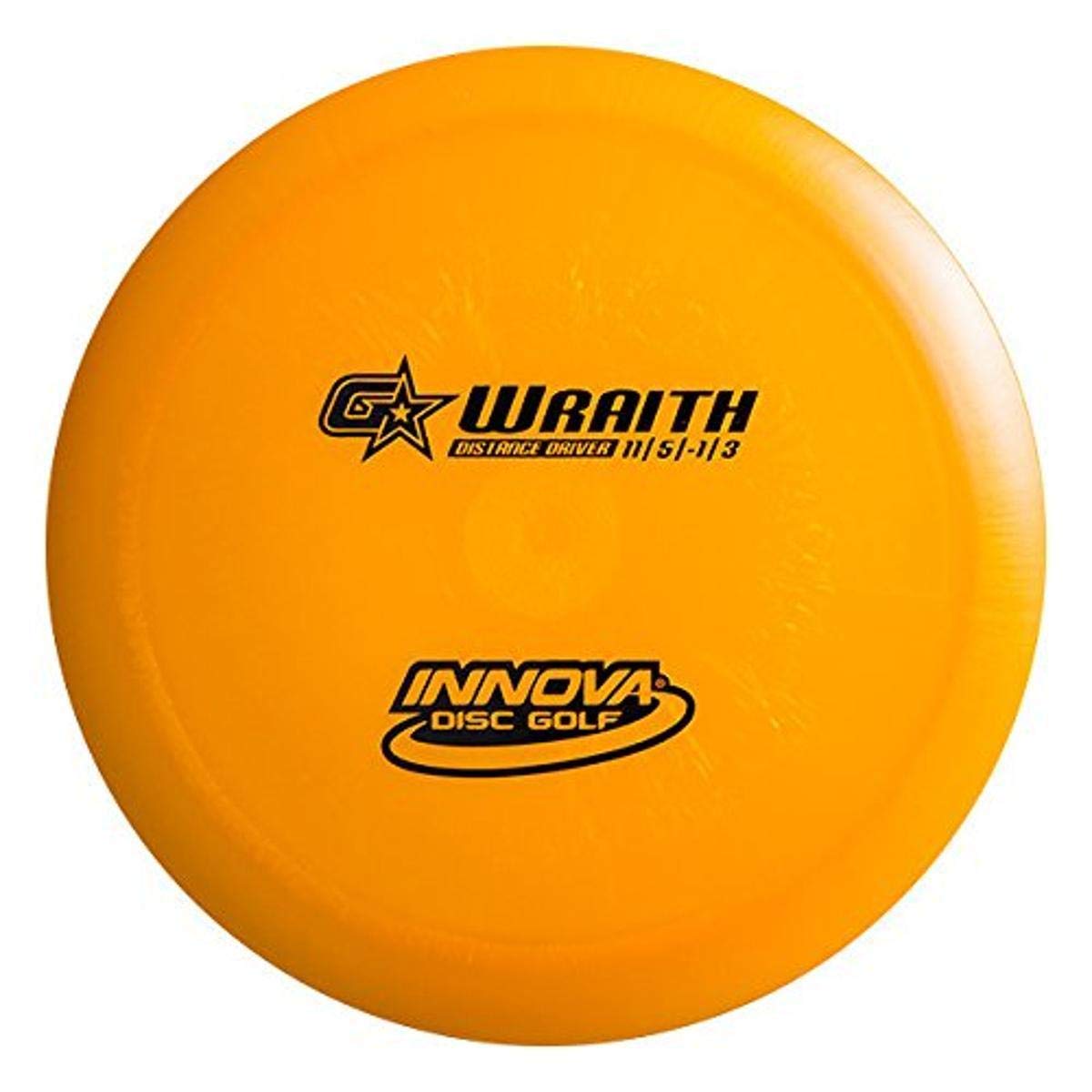 GStar is a new softer, more flexible blend of Star plastic, which features an eye-catching pearlescent sheen for a unique look as well. The Wraith is the first disc that broke Innovas Speed 10 barrier. It is a stable flyer that performs predictably well in the wind with speed, glide, and accuracy. Performs remarkably well when thrown at less than full speed as well as at full speed. The Wraith is also an excellent side arm disc.