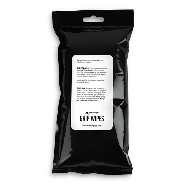 Karma golf grip cleaning wipes are a convenient, fast and effortless way to clean your grips of dirt and grime and makes your grips tacky once again. The Karma golf grip cleaning wipes come in a resealable 15-count package that easily fit inside your bag. The fast-drying formula goes to work to minutes. Finally, no more mixing soap and water and then waiting hours for the grips to dry the old-fashioned way. Let Karma grip wipes give you peace of mind and no more loss of valuable strokes due to slick grips.