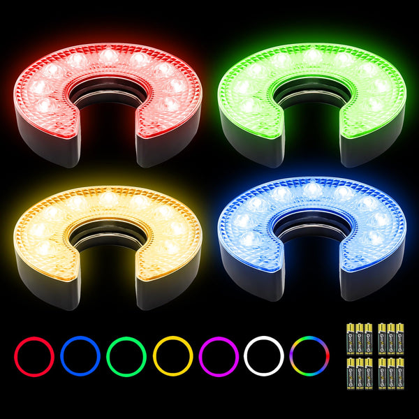 Glare-Reducing Lens: Kingtop golf hole lights are designed with a specialized lens that reduces glare. The lens ensures that the light is dispersed evenly and prevents any blinding effects that may affect a players putting or vision. RGB Ambient Lighting: Kingtop lights for golf holes offer a variety of lighting color options, which allows players to customize the ambiance of the game according to their preferences. The golf cup lights are available in a range of colors, Red, Blue, Green, White, Yellow, Purple, and White, which can be used to create a specific atmosphere or to help players differentiate between different holes on the course. Easy Installation: Kingtop Golf cup lights are designed to be easily installed and removed, making them a convenient addition to any course. They are battery-powered, which eliminates the need for cumbersome wiring and makes them portable. The lights can be installed quickly and easily by simply inserting them into the hole. Standard Size: Fits all PGA standard golf holes, great for illuminating putting cups for casual nighttime golf play, putting, and chipping practice. Just put it in the hole cup and you are good to go then. If your existing flagpole has the ball retriever, you can take the flag out and put the hole lights in from the top of the pole. Golf Anytime: It improves your golfing loyalty with the addition of KINGTOP LED hole bulb to your backyard putting green, bringing you so much fun at night. Dont let darkness limit your fun forever! How-to-Use: Just simply click the on-off switch, on every click, it will cycle among Red, Blue, Green, Yellow, Purple, White, and 6-color Circulation, a total of 7 options for mood illumination, really cool for backyard golf parties.