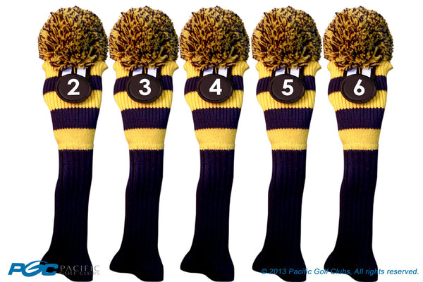Majek #2, 3, 4, 5, 6 Hybrid Combo Pack Rescue Utility Blue & Yellow Golf Headcover Knit Pom Pom Retro Classic Vintage Head Cover