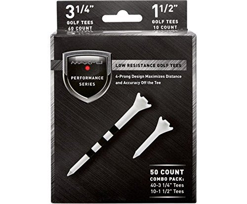 Maximize distance and accuracy on every tee shot with Maxfli Performance Series Low Resistance golf Tees This combo pack features tees designed for use with metal woods and irons for targeted performance The 4-prong design reduces club face contact and golf ball drag for maximized distance and accuracy from the tee Optimal Launch System cues along the tee shaft help golfers achieve consistent height and trajectory