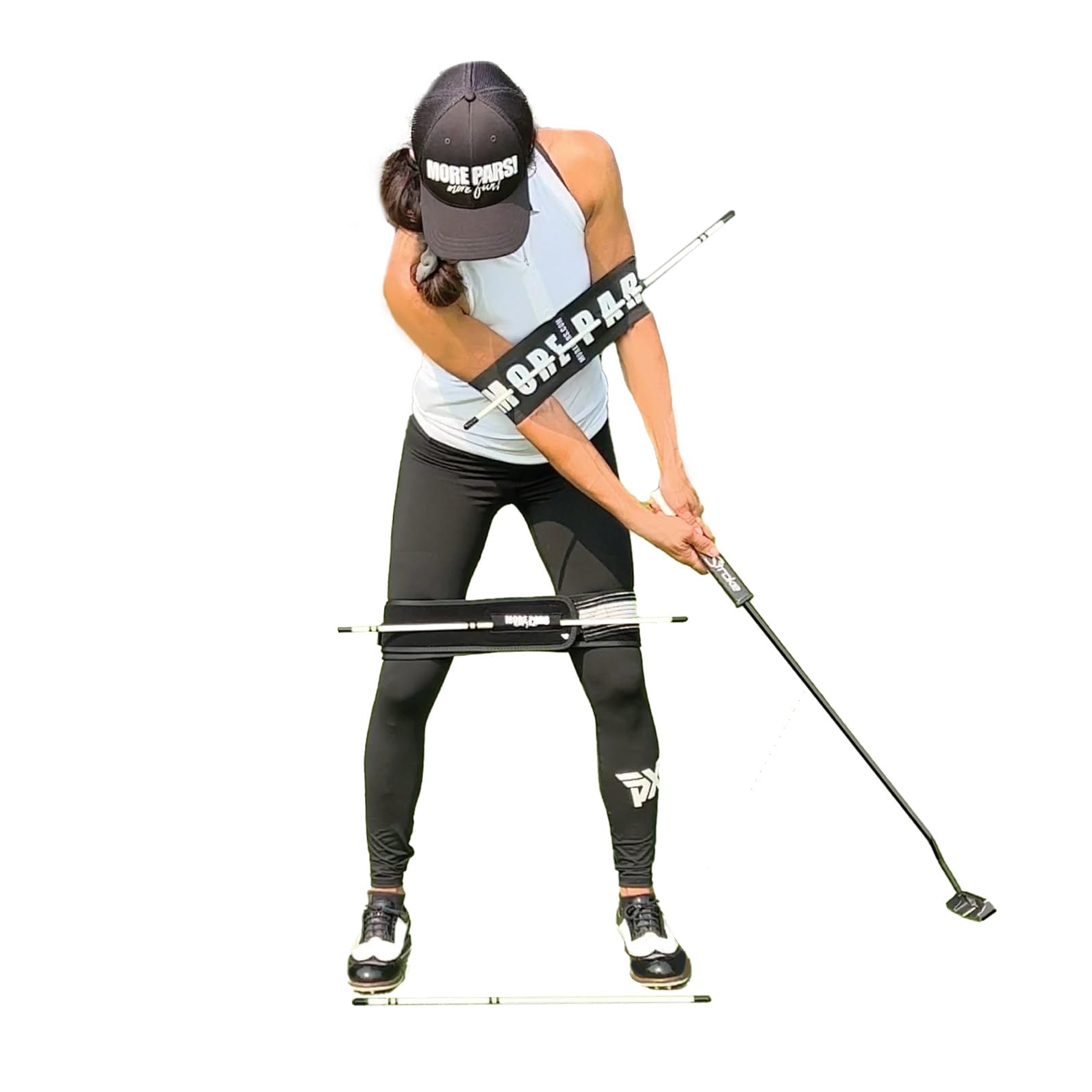 MORE PARS Arm Band & Leg Trainer with Mini Rods for Putting will be a dynamic duo game-changer for your putting game. So whether you struggle with setup, alignment, the stroke, or excessive body movement, the Putting Trainer Set will be your pal to provide instant feedback for real change on the green.