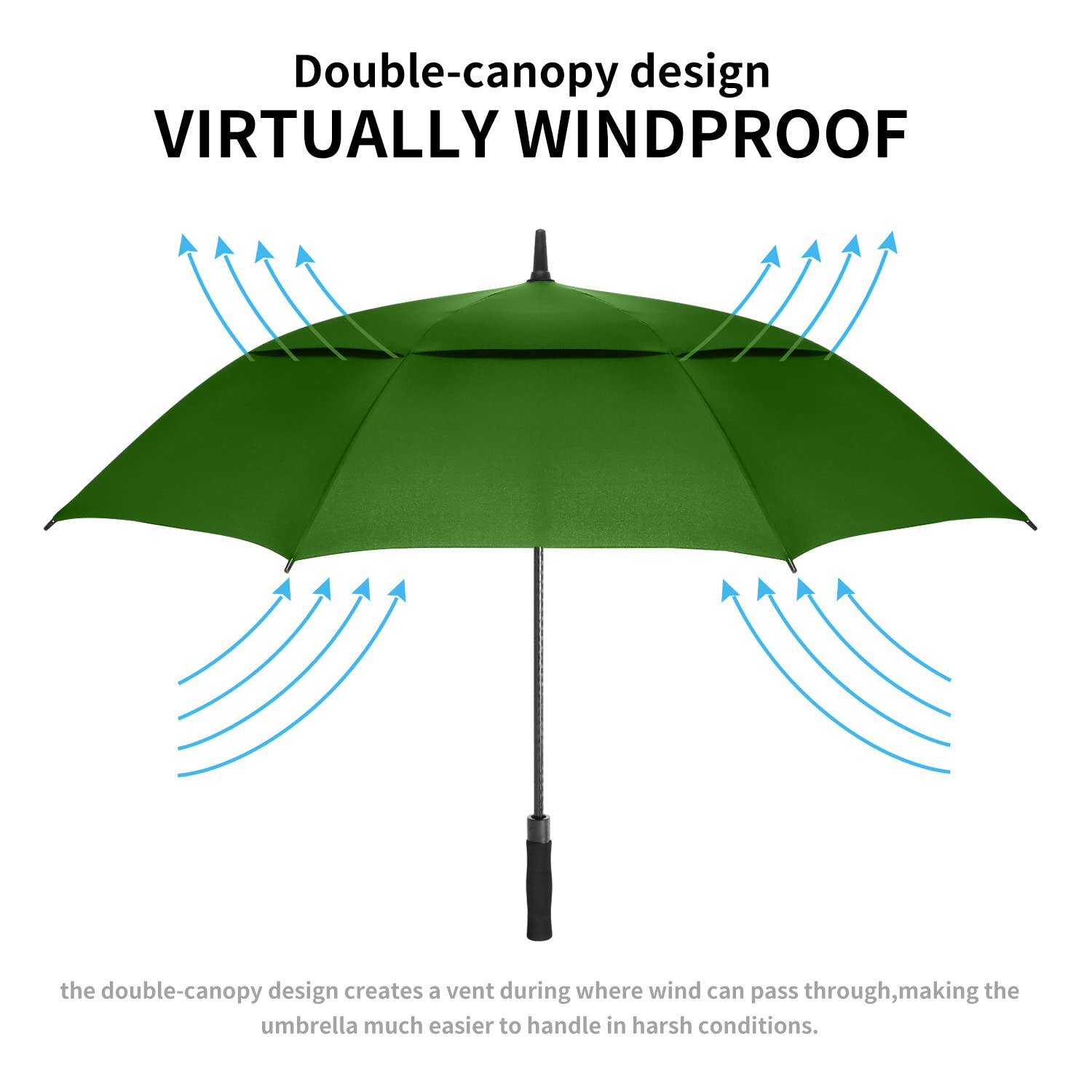 Mrtlloa 68 Inch Automatic Open Green Golf Umbrella, Extra Large Oversize Double Canopy Vented Windproof Waterproof Stick Umbrell