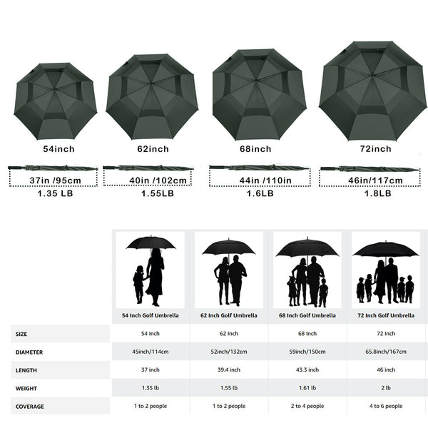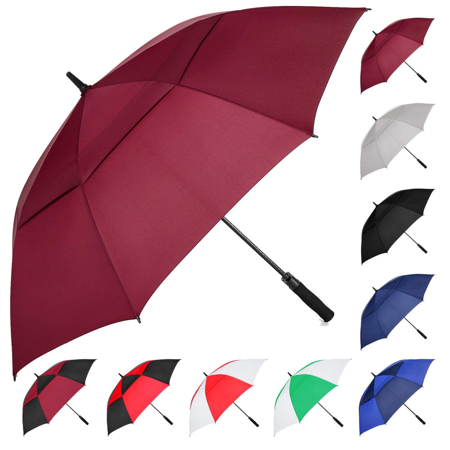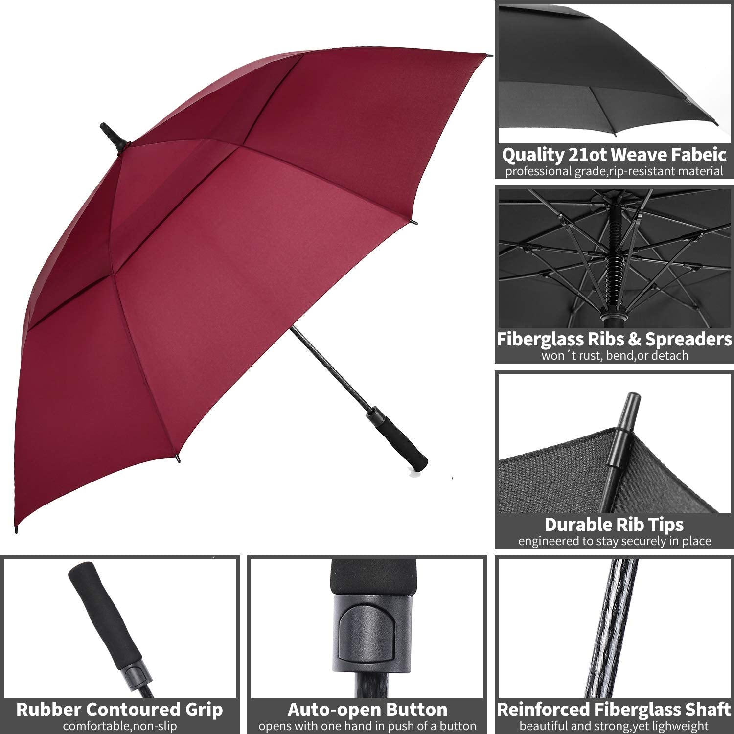 MRTLLOA 72 Inch Automatic Open Burgundy Golf Umbrella, Extra Large Oversize Double Canopy Vented Windproof Waterproof Sports Stick Umbrellas for Rain (Burgundy, 72 Inch)