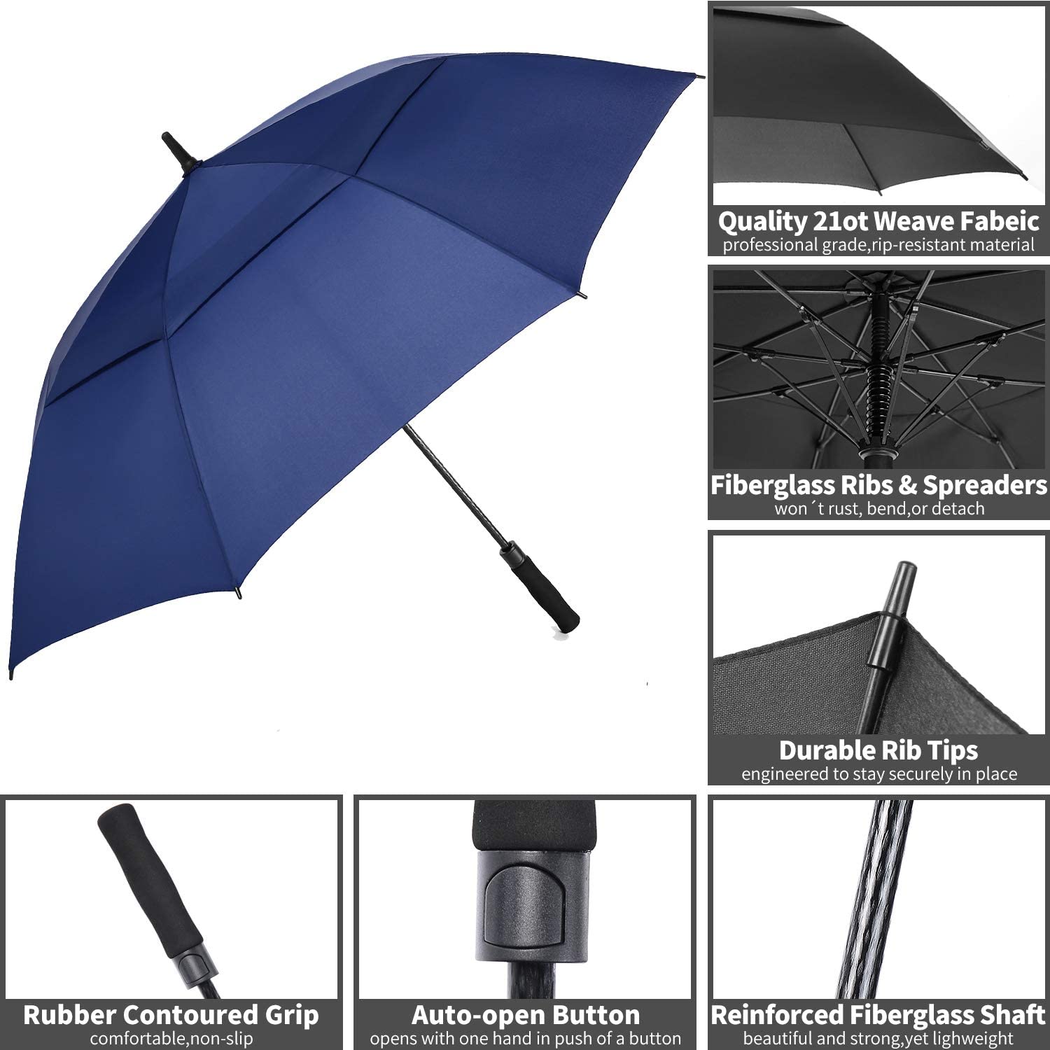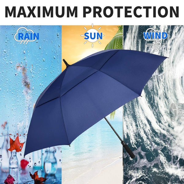 Mrtlloa 72 Inch Automatic Open Navy Blue Golf Umbrella, Extra Large Oversize Double Canopy Vented Windproof Waterproof Stick Umb