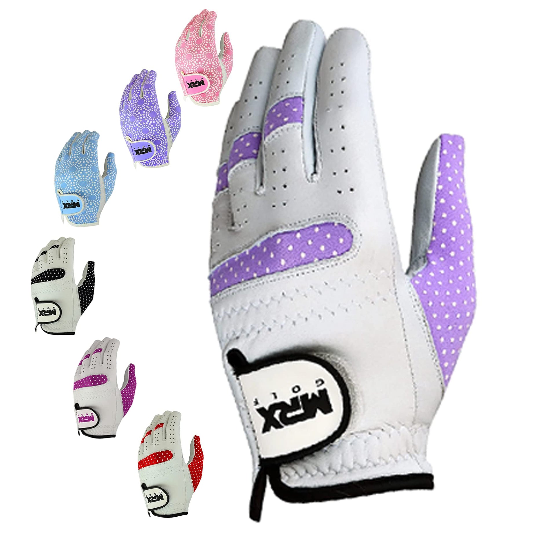 Mrx Women Golf Glove Left Handed Golf Gloves Sweat Resistant Soft Cabretta Leather Regular Fit Women Golfer Glove White Purple
