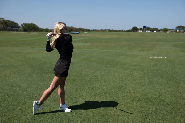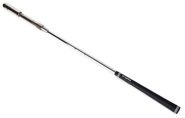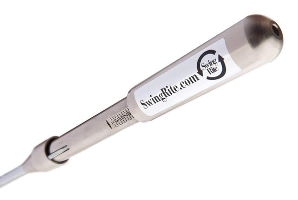 The SwingRite instructs with a ''click'' sound. The click tells the user where their hands are releasing. The click should ultimately happen in the impact zone (bottom) of the swing. This Regular Model SwingRite is 34 1/4 inches long and weighs about 17 ounces. The metal part of the SwingRite is electroless nickel plated, which helps to preserve the quality of the product. The product and made and assembled in Massachusetts.