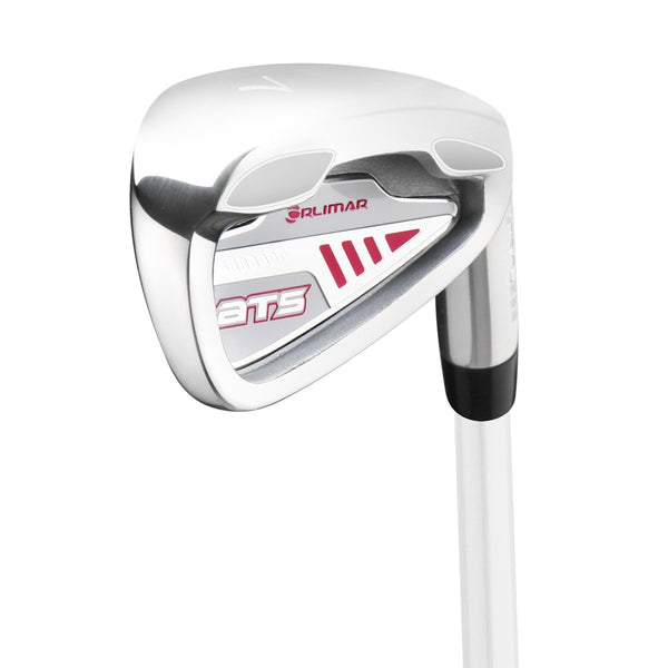 The Orlimar A.T.S. Junior Girls Pink 6-piece golf set is suitable for RH girls ages 5-8 years old or between heights of 3'8''-4'4''. This set comes with a lightweight 320cc high-lofted driver to promote a high launch off the tee, a 7-iron, wedge, putter, headcover and a lightweight carry bag.
