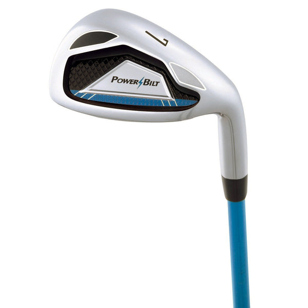 The Powerbilt Junior Blue 6-piece golf set is suitable for RH Boys ages 5-8 years old or between heights of 3'8''-4'4''. the set comes equipped with a lightweight 320cc high lofted driver to promote higher launches off the tee. The set also comes with a 7-iron, wedge, PUTTER, Head cover and lightweight carry bag for easy transport.
