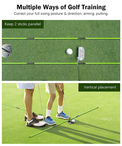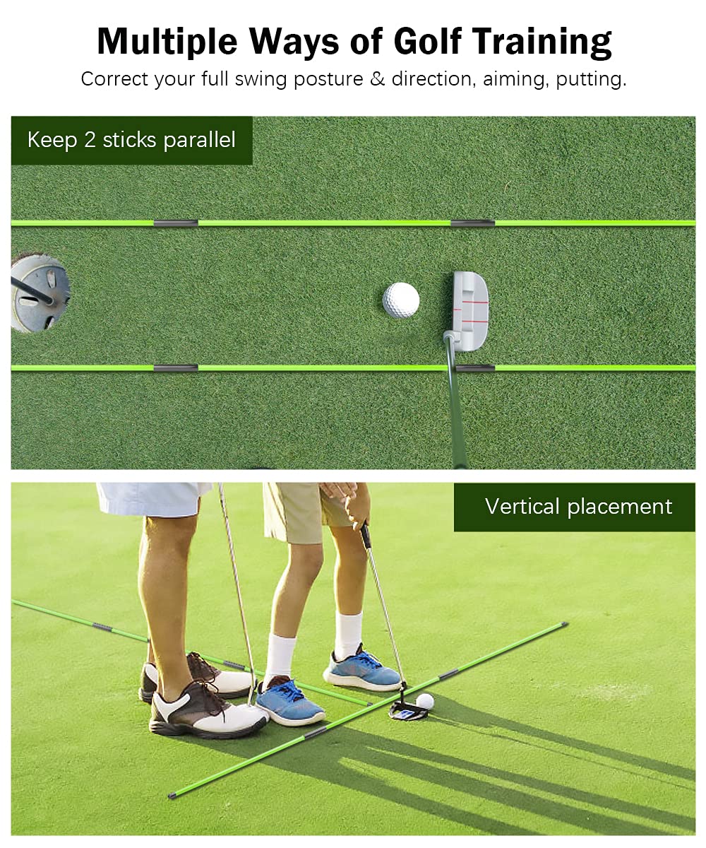 Rhino Valley golf Alignment Sticks Many players just want to hit the ball higher and farther, and often ignore the direction of the ball hitThis kind of swing direction indicator can effectively help the player to hit the ball accurately in practice, so that the player can hit the ball to the target area more effectively and accurately*High-Quality MaterialMade of glass fiber material, with light weight and durable to use*Start with the basic principles of golf to make it easier and more funThe training rods can be used for full swing, short game, putting and set-up, aiming, putting, full swing trainer, posture corrector, etc Perfect for Indoor and Outdoor Use*FeaturesEasy alignment, better ball position, more accurate putter, more accurate cut*Detailed instructions*Fully Unfolded length: Fully Unfolded: 48in*Folded: 17in*Each pack of training rods comes with 2 collapsible rods (Storage Tube Included)