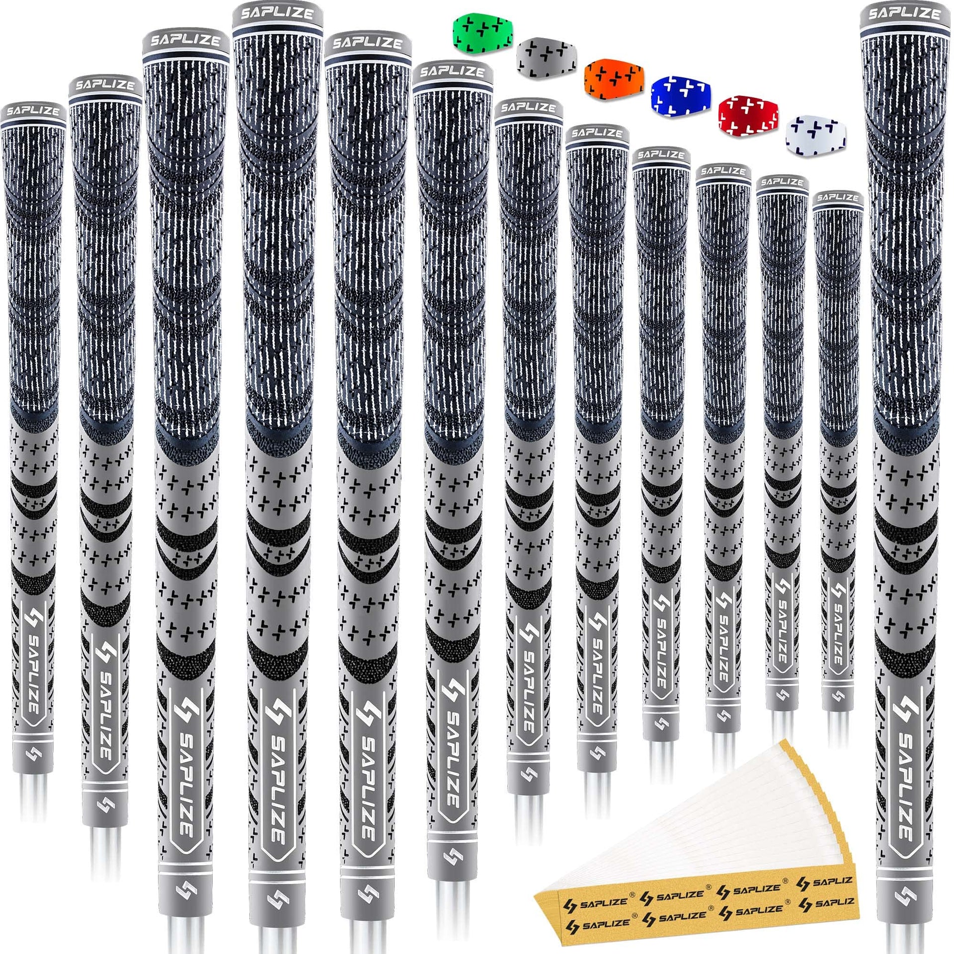------ SAPLIZE, smart action, smart play! ------ This serie of rubber grips is one of the most professional models in our product family.Compound material technology provides an excellent controlling of the grip.Upper part: Hybrid / High Stability / Anti-slipLower part: High-feedback Rubber Product Details: Color: 6 colors avaliable Size: Standard or Midsize Materials: Hybrid (Upper Part), Rubber (Lower Part) Package includes: Golf Grip * 13 Grip Tape * 15 After-sales Service If you have any questions about the products, please feel free to contact us. Your feedback and review will greatly help us improve our products and services. Most customers can benefit from your feedback and reviews to make their decisions. Whats SAPLIZE? SAPLIZE is a brand aiming to offer great solutions to your sport needs. With more than 10 years of design and production experiences of golf grips, we are confident of serving customers with great Golf Grips. We pay much attention to customers requirements and hope to understand better. Your any ideas are our cherished code of conducts which help us improve. ------ SAPLIZE, smart action, smart play! ------