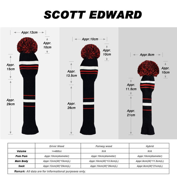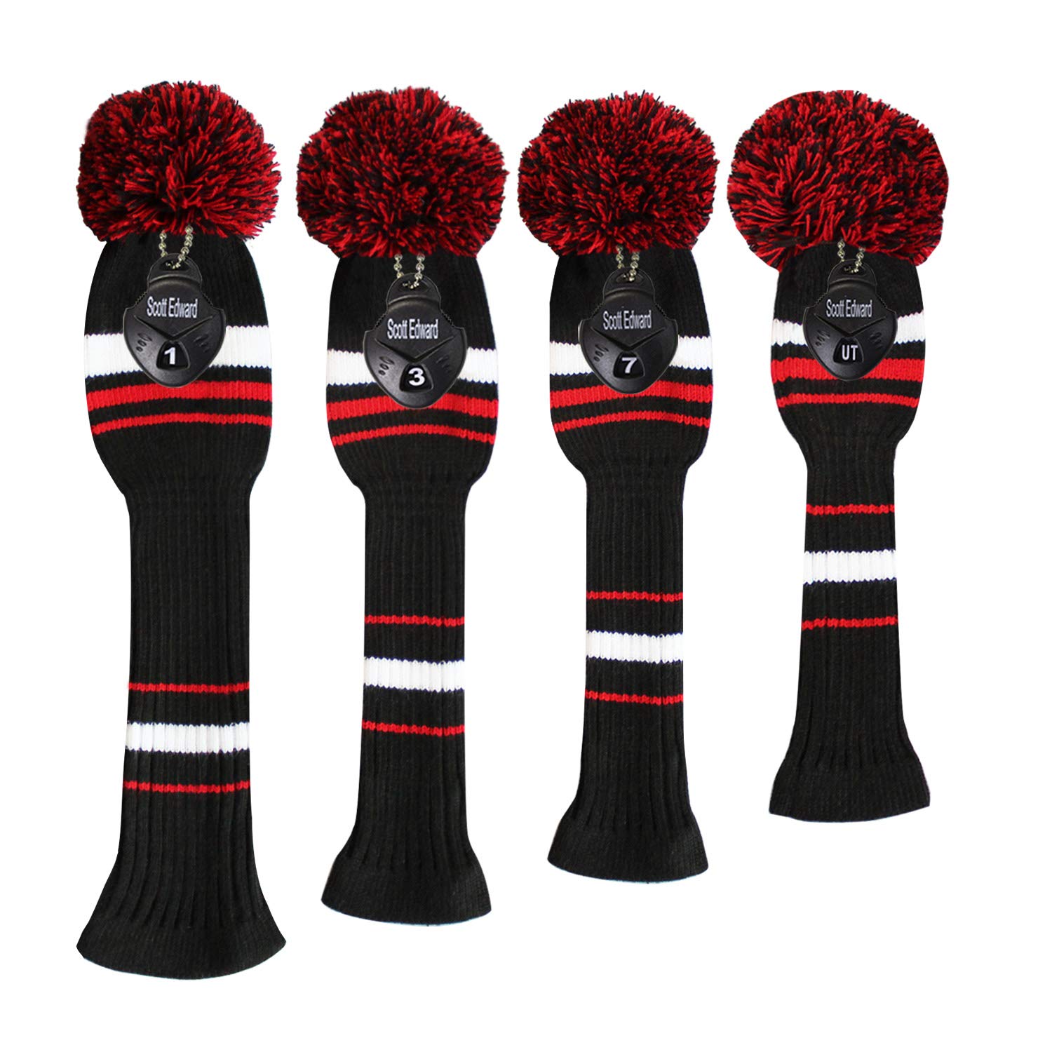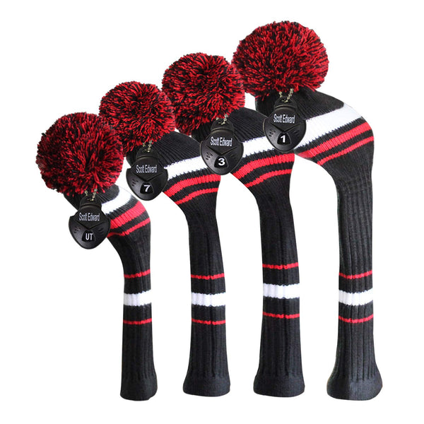 Scott Edward Black White Red Stripes Golf Headcover Set 4 For Driver Wood/Fairway Wood And Hybrid