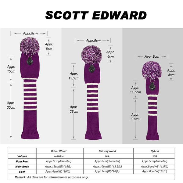 Dark Color Golf headcover Set of 3 for driver(460CC), fairway wood and hybrid(Utilities).With rotating 3 number tags(available #1,#2,#3,#4,#5,#6,#7,#8,#X,#UT), Good Looking and individualized.Anti-wrinkle anti-pilling, soft Acrylic yarn double-layers knitted. Washable to keep ever new look.Unisex.