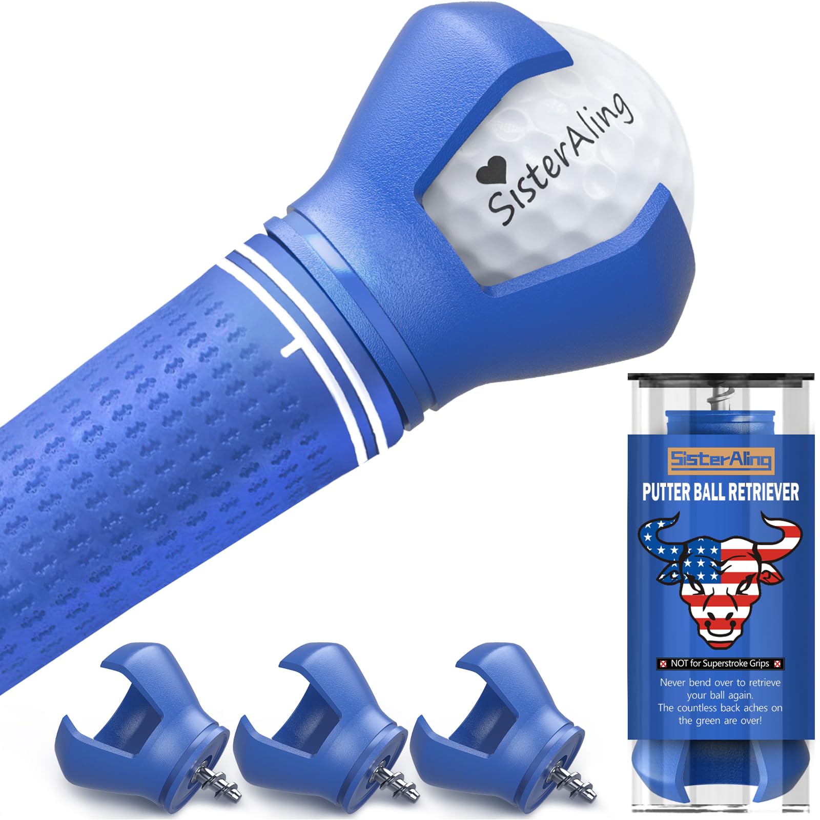 Sisteraling 3-Prong Golf Ball Retriever Grabber Pick Up,Back Saver Claw Put On Putter Grip,Suction Cup Ball Grabber,Sucker For G