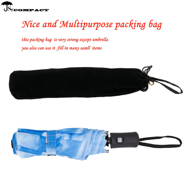 Lets get straight to the heart of the matter:Attention: we are 20 years umbrella history factory,We promise to provide you with the best products and the best priceAnd we will provide one to one exclusive customer service choose that we will never let you down Usage method: 1 hold the umbrella handle and find the button on the handle 2 press the button to automatically open 3 press the button, automatically close the umbrella 4 hold down the end of the umbrella with both hands and press downward Be careful: Please dont close the umbrella manually cOMMON USAgE SITUATIONS -In The car, RV, Or Boat -School Book Bag, Bus Stop -Outside Work, gardening -Baby Stroller, Diaper Bag -Hiking, camping, Hunting -Business Brief case, Laptop Bag -Luggage, Business & Vacation Travel -Lightweight Kids can Use -covers 2 Adults comfortably -As a gift You cant go Wrong With An Umbrella It Will get Used Package including: 1*SY compact automatic umbrella 1*Umbrella cover Style: Folding windproof umbrella color: black , sky blue canopy Arc: 8 Ribs Operation: Auto Open and closed Shipping Weight: 345g Package Height:177 x157 x 1083 inches