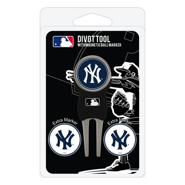 - Q: What is included in the Team Golf MLB New York Yankees Divot Tool Pack? A: The pack includes a sleek Signature divot tool and three double-sided enamel color fill magnetic ball markers.