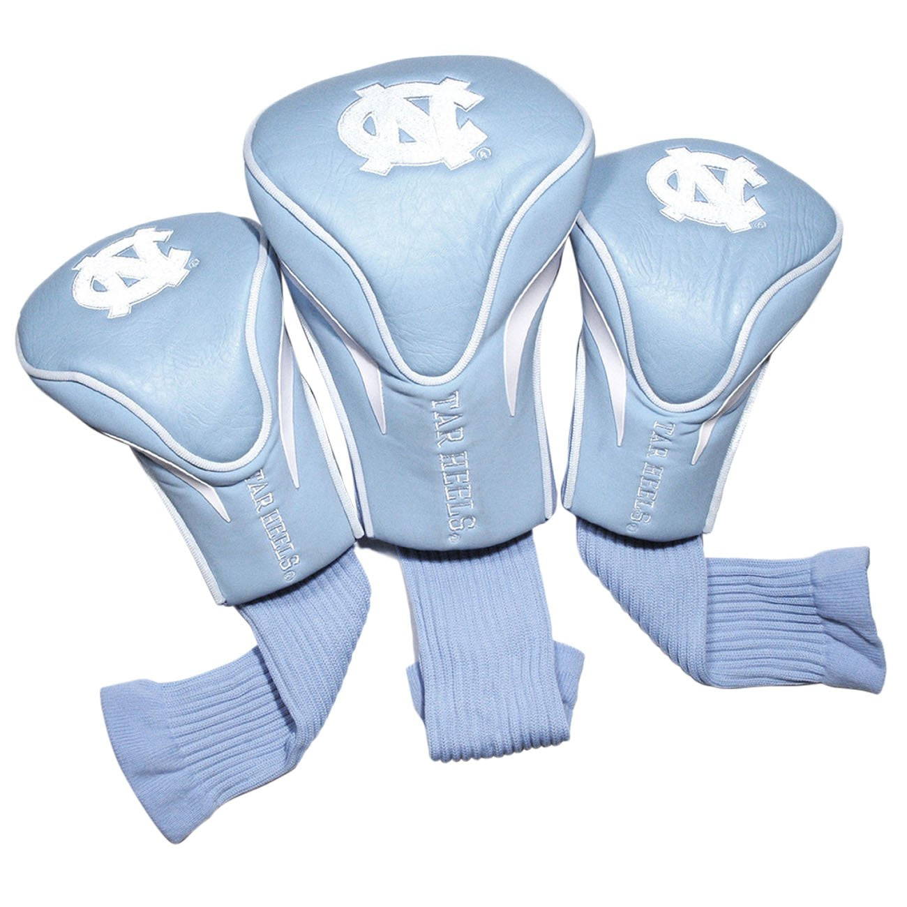 - Q: What team logos or colors are available with these headcovers? A: The headcovers prominently feature the North Carolina Tar Heels team name, logo, and colors, showcasing your team spirit.