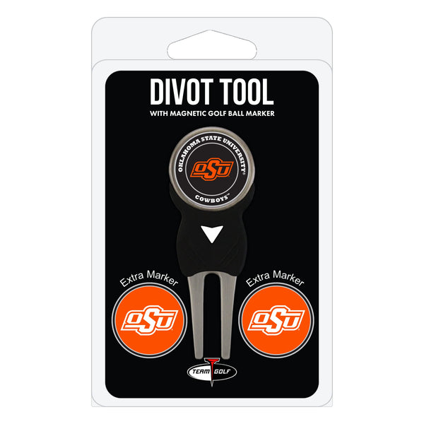 - Q: What is included in the Team Golf NCAA Oklahoma State Cowboys Divot Tool Pack? A: The pack includes a sleek Signature divot tool and 3 double-sided enamel color fill magnetic ball markers with a nickel color finish.
