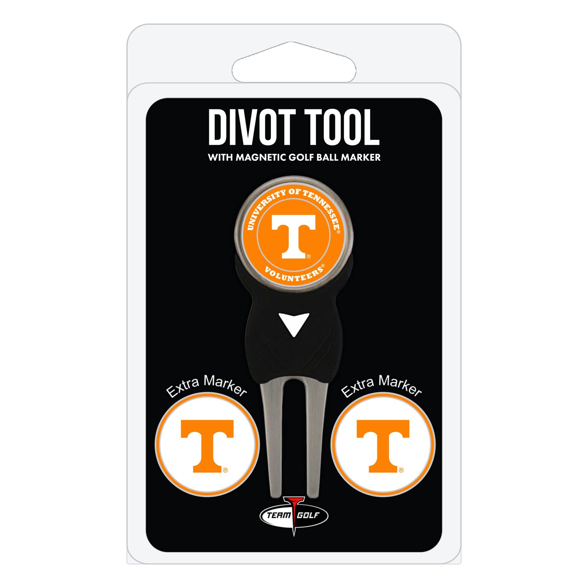 - Q: What does the Team Golf NCAA Tennessee Volunteers Divot Tool Pack include? A: The pack includes a sleek Signature divot tool and 3 double-sided enamel color fill magnetic ball markers, all featuring a nickel color finish.