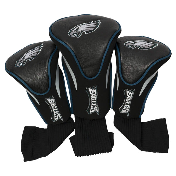 - Q: What is included in the Team Golf NFL Philadelphia Eagles Contour Golf Club Headcovers set? A: The set includes three contoured golf club headcovers numbered 1, 3, and X, designed to fit oversized drivers, utility, rescue, and fairway clubs.