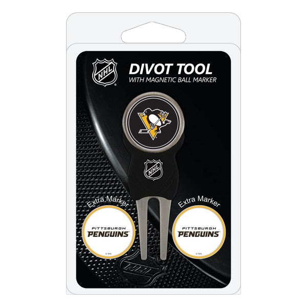 - Q: What is included in the Team Golf NHL Pittsburgh Penguins Divot Tool Pack? A: The pack includes a sleek Signature divot tool and three double-sided enamel color fill magnetic ball markers with a nickel color finish.