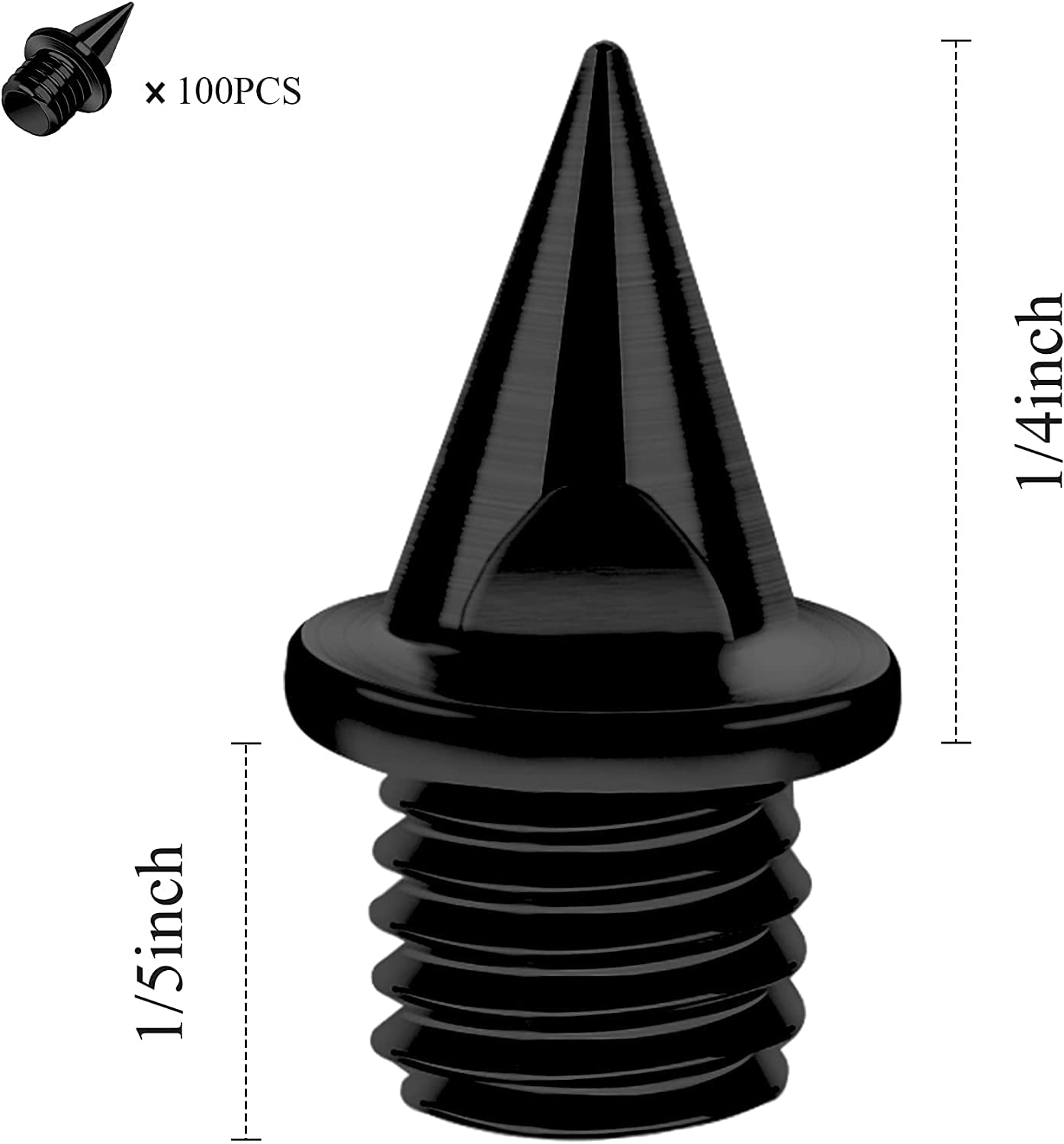 Vocool 100 Pcs 1/4Inch Black Stainless Steel Track And Cross Country Spikes With Spike Wrench, Pyramid Replacement Track Spikes