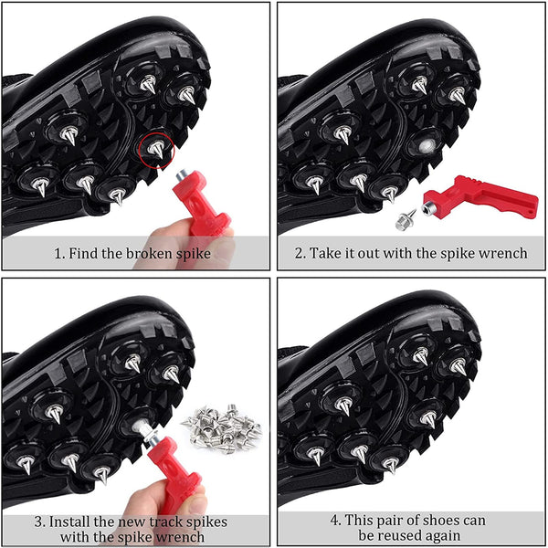 Vocool 100 Pcs 1/4Inch Silver Stainless Steel Track And Cross Country Spikes With Spike Wrench, Pyramid Replacement Track Spikes
