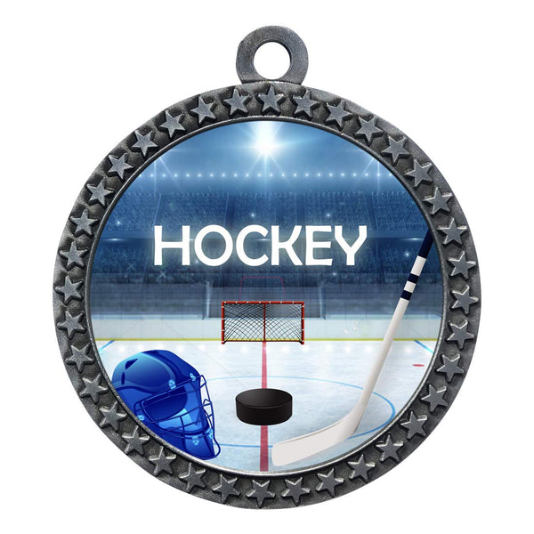 10 Pack of Ice Hockey Silver 2.25 Inch Medals Trophy Awards with Red White Blue Neck Ribbons D212S-EG140-10PK